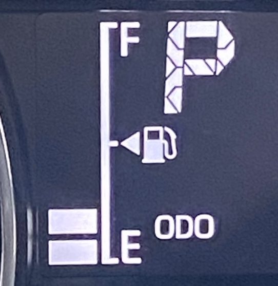 メーターパネルを見ると、ガソリンスタンドの給油機マークの隣に小さな▲印があります。